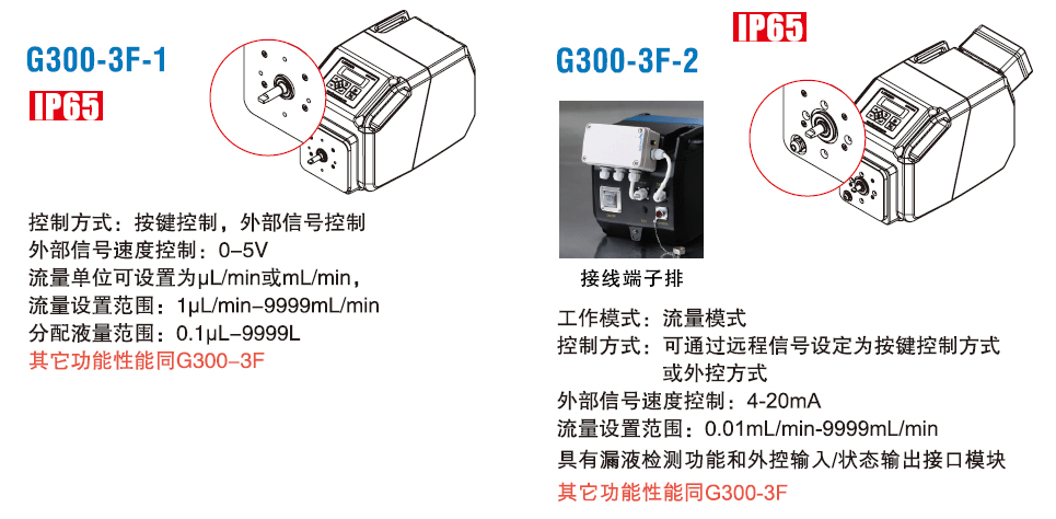 蘭格公司根據(jù)客戶的具體需求,提供定制化的工業(yè)蠕動(dòng)泵解決方案。G300-3F-1和G300-3F-2都是以G300-3F為基礎(chǔ)的定制化產(chǎn)品,可以配合使用市場(chǎng)上常用的工業(yè)蠕動(dòng)泵泵頭,并根據(jù)需要更改工作模式、外控功能、增加泵頭漏液檢測(cè)功能等。