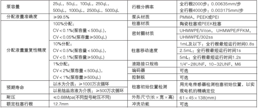 可選沖洗功能,以實(shí)現(xiàn)易結(jié)晶溶液的長(zhǎng)壽命傳輸。可配置電機(jī)編碼器,以實(shí)現(xiàn)電機(jī)位置的實(shí)時(shí)監(jiān)控??膳渲弥每刂破?,以縮短集成系統(tǒng)開(kāi)發(fā)周期。